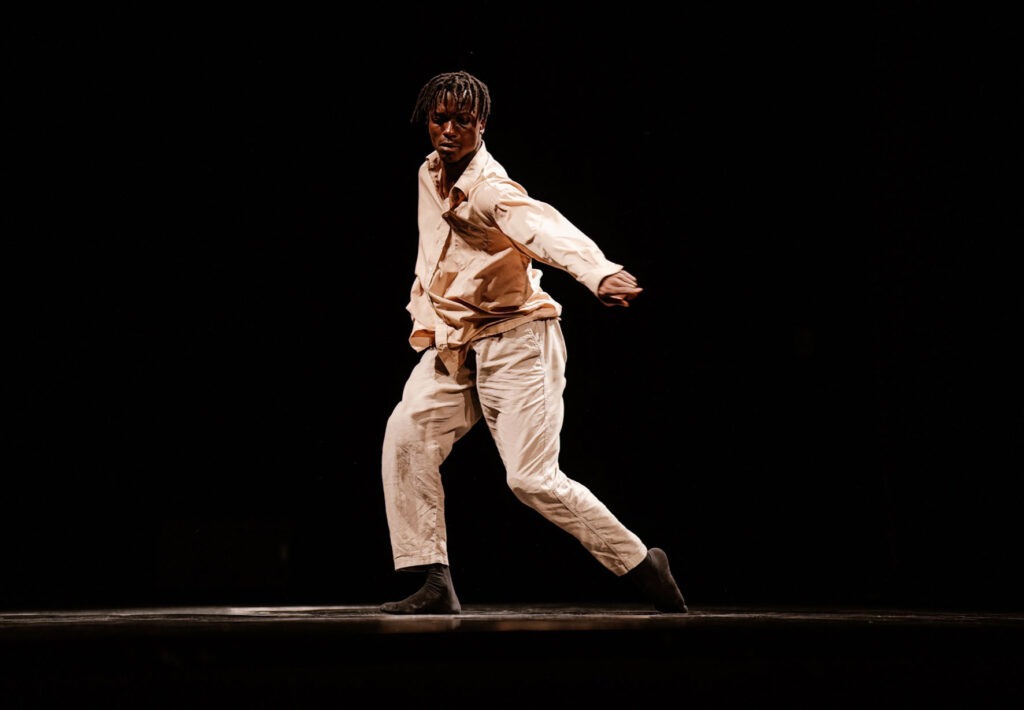 À travers un solo de danse et cirque, Mahamat, né en Côte d’ivoire et ayant grandi en France, explore le tiraillement entre ses aspirations personnelles et les injonctions sociales, tout en abordant les thèmes de la dette familiale et du choc des cultures.