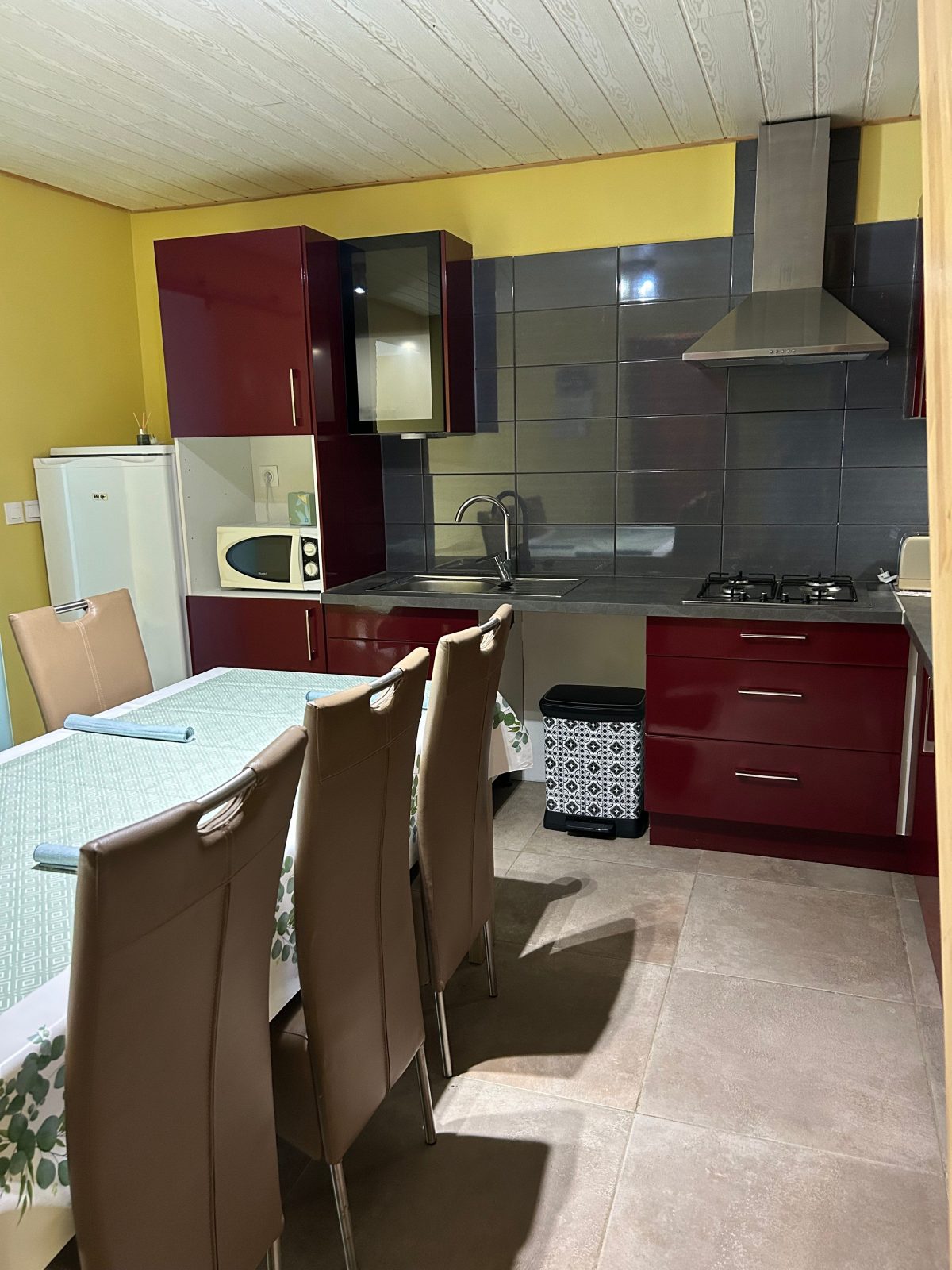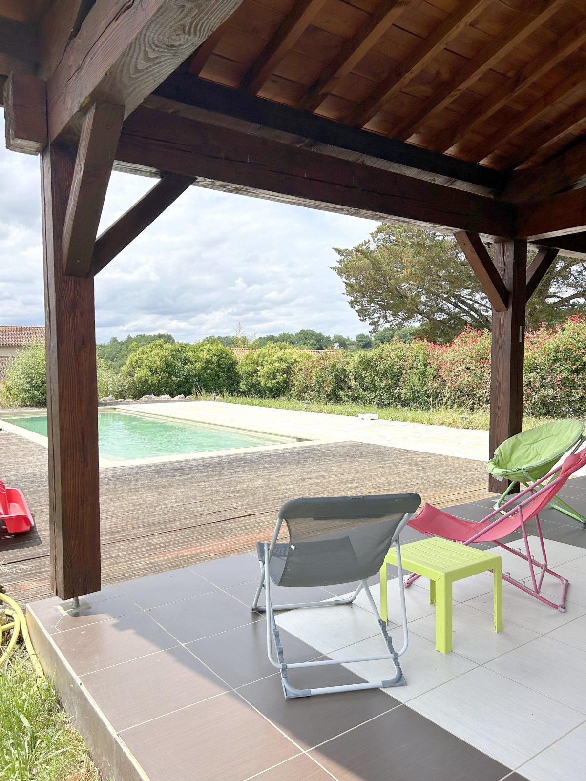 À l’extérieur, profitez d’un espace repas en plein air, idéal pour les soirées d’été. Une piscine commune est à votre disposition, partagée avec deux autres gîtes (4 personnes chacun), pour vous rafraîchir et vous détendre en toute convivialité.