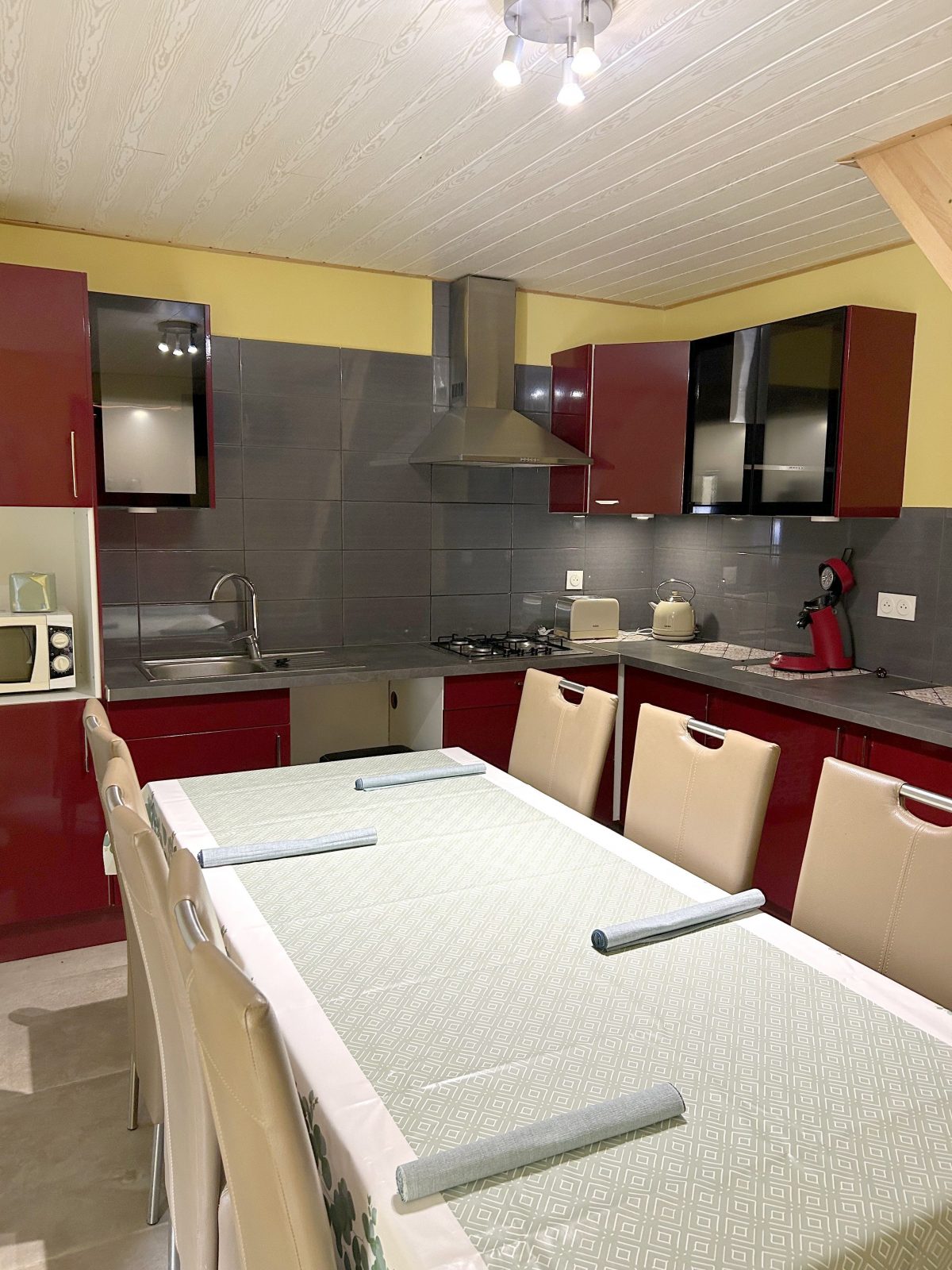une cuisine entièrement équipée (réfrigérateur, plaque de cuisson, four, micro-ondes, lave-vaisselle…),
