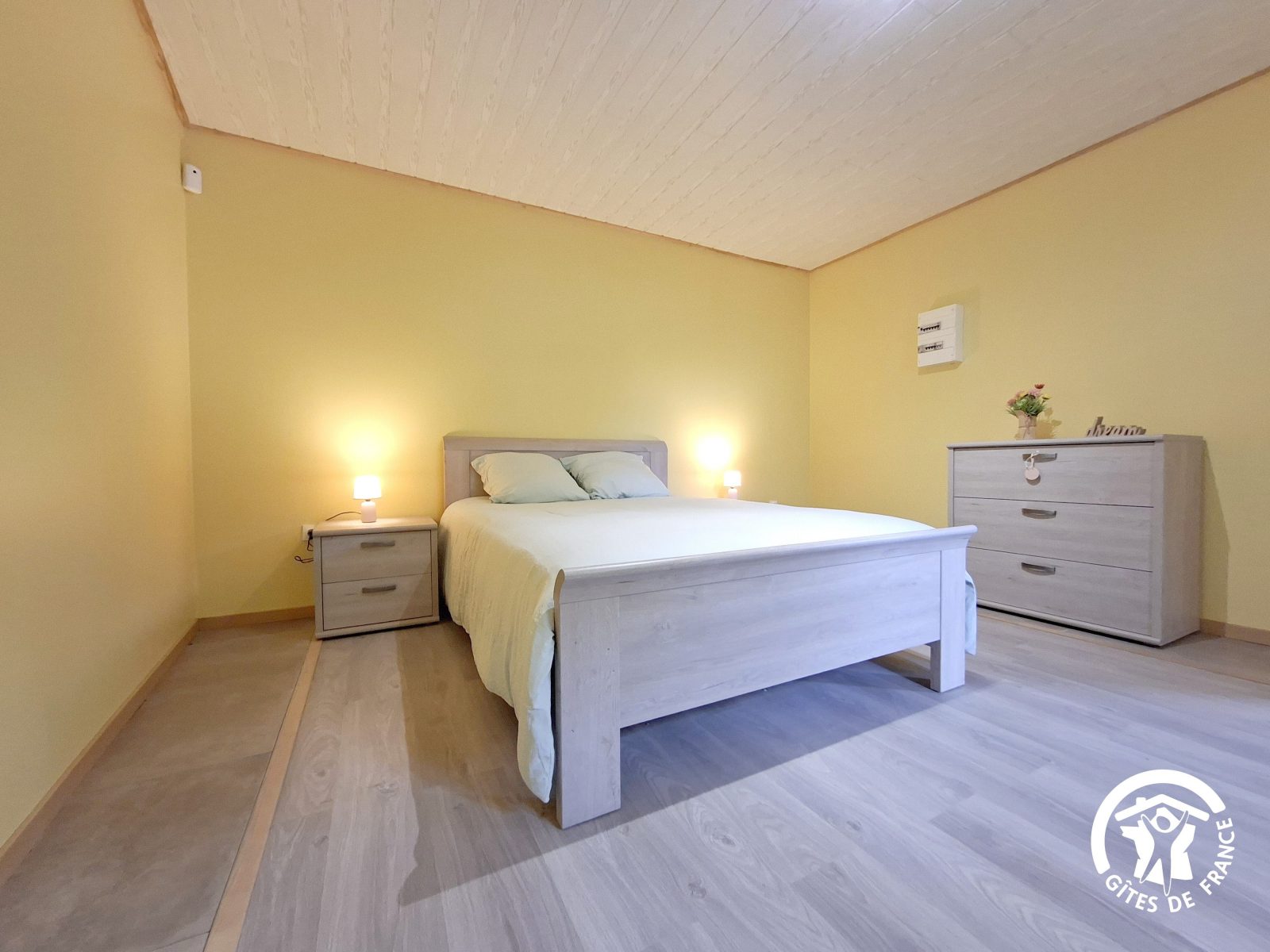 une chambre avec un lit double (140 cm),